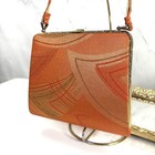Vintage 60s Japanese Kimono Bag Handbag Purse Frame Mcm Pattern Orange Gold Glam