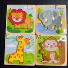 Kids Wooden Alphabet Animal Puzzles – Set Of 4 Random Letters, Educational Learn