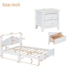 Vichy 3-piece Rubberwood Bedroom Set, Platform Bed With Two Nightstands, Queen,