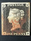 Antique Queen Victoria Victorian Penny Black Used 4 Margins Stamp Plate 8