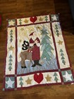 Country Smiling Santa Quilted Throw 50”x60” Christmas Appliqué Wall Hanging
