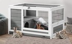 Elevated Rabbit Hutch Cage Wooden Bunny Cage Rabbit Small Pet Animal House Gray