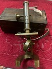 Brass Microscope Vintage Student Microscope 7" Rare Monocular Type W/leather Box