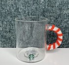 Rare Starbucks Holiday 2020 Glass 12 Oz Candy Cane Handle Mug Cup Christmas New