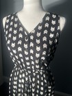 Vintage 90s Black Abstract Cat Dog Print Casual Midi Dress Artsy Boho Grunge Xl