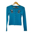 Vintage 90s Streetwear Womens Large Abstract Beaded Cat Kitten Knit Sweater Blue