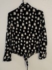 H&m Cat Geo Novelty Print Blouse Womens 14 Black White Long Sleeve Career