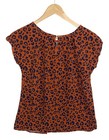 Libby Story Womens Small Snake Print Sequin Cat Silky Top Brown Shirt Topper
