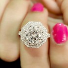 Real Moissanite Double Halo Engagement Ring Solid 14k White Gold 3 Ct Round Cut