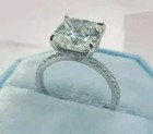 3.40ct Cushion Cut 14k White Gold Plated Real Moissanite Halo Engagement Ring