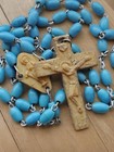 Vintage Blue Catholic Religious Prayer Rosary Beads Cross Crucifix Italy