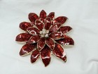 Red Rhinestone Crystal Poinsettia Pin Brooch Christmas Holiday New #6297