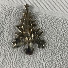 Enamel Rhinestone Christmas Tree Brooch Pin, Gold Holiday Winter Jewelry Gift