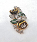 Vintage Coro Duette Rhinestone Enamel Quivering Flower Brooch Pin