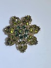 Green & Ab Rhinestone Flower Pinwheel Brooch Pin Open Work Tips Gold Tone