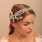 Bride Flower Wedding Hair Vine Leaf Hair Piece Pearl Bridal Headpiece Rhinestone