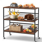 3-tier Metal Rolling Cart On Wheels With Baskets Storage With Removable Shelves