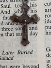 Antique Brass, Silver, Wood & Red Glass Double Crucifix Rosary