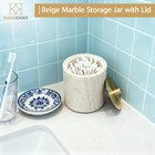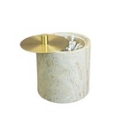 Qtip Holder With Brass Lid, Beige Travertine Cotton Swab Jars, Modern Round Marb