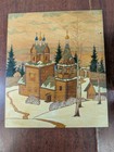 Russian Hand Painted Wooden Carved Box Pyrography Church Snow Scene 6.25”