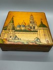 Russian Hand Made Painted & Carved Wooden Box Vintage Pyrography Castle Details