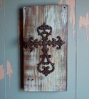 Large 16" Forged Iron & Reclaimed Wood Wall Cross Rustic Decor