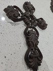 Floral Scrolls Wall Cross Cast Iron Rustic Brown Victorian Style 13 X 9 Inch