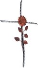 Flower With Leaves Metal Wall Cross, Rustic Décor, Religious Gift, 20 Inches