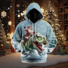 Santa Riding Dinosaur Christmas Hoodie, Funny 3d Print Holiday Ugly Sweatshirt