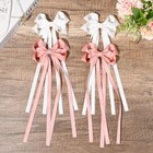 4 Pcs Hair Bows Ribbon For Women Hair Clip White Pink Satin Bow With Long Tassel
