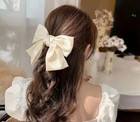 Ivory Cream Satin Stylish Bow With Big Ribbon Hair Clip All Hair Types Non Slip