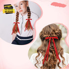 4 Pcs Red Ribbon Bows, Red Silky Satin Ribbon Bow, Tassel Ribbons Bowknot Hair C