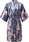 Womens Satin Kimono Robe Silk Robes Floral Bathrobe Bride Bridesmaid Wedding ...