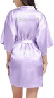 Women’s Satin Robe Bridesmaid Short Kimono Lavender Purple Rhinestones Wedding