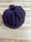 Handmade Ponytail Beanie – Deep Purple Chunky Knit – Messy Bun Winter Hat