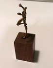 Small Modernistic Bronze Ballet Dancer Sculpture On Wood Block