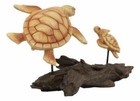 Mother & Baby Sea Turtle Family Statue 10"l Faux Wood Resin Figurine Nautical