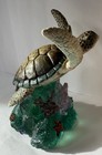 Blue Sea Turtle Figurine On Coral Painted Resin (1 Turtle Approx. 5+ Inches)