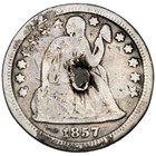 1857 Seated Liberty Silver Quarter- Fine Obverse Details, Old Love Token?