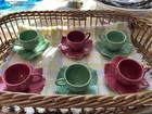 Senegal Fine China Cups & Saucers Includes Metal Hanging Rack 6 Cup Set