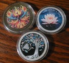 3 Sobriety Coin Lot – Phoenix, Lotus, Serenity Prayer Medallions Aa/na Recovery