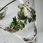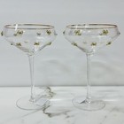 Christmas Coupe Glasses Gold Bow Rhinestone Jeweled Holly Cocktail Set Of 2 New