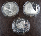 1994 Veterans Commemorative 90% Silver Proof $1 Dollars; 3-coin Set (l770)