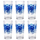 [set Of 6] Blue Flower Glasses Juice Highball Drinking Glasses Set 6 X 7 Fl Oz