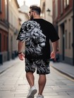 Men's Large Lion Pattern Printed Fashion Crew Neck Top T-shirt And Shorts Set,