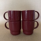 Tupperware Vintage Coffee Mugs (set Of 4) Stackable 9 Oz. Burgundy #2224