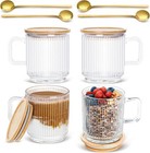Set Of 4 Glass Tea Mugs With Lids And Spoons Vintage Glass Coffee Mugs