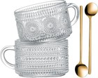 Vintage Glass Coffee Mugs 14 Oz Set Of 2 Clear Embossed Tea Cups, Glass Coffe...
