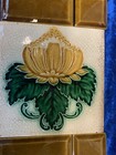 Antique Majolica Fireplace Tile 6 X 6” Tiles "morning Glory" Felt Backing Look!