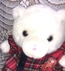 Vtg Josef Originals Flocked Tabby Cat & Teddy Bear Big Eye Merry Christmas 2 Lot